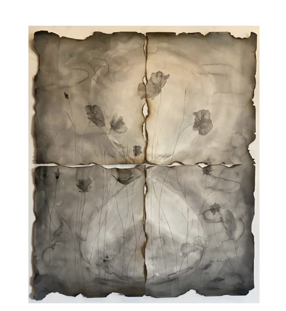 The gallery presented Equanimity, a contemplative series by Joy Adeboye that traced a quiet reckoning with the limits of certainty. Through translucent, trembling watercolors, Adeboye explored the thresholds between presence and disappearance, belief and doubt. In works such as Nihil, form drifted toward dissolution, surrendering to an emptiness that felt paradoxically full. Time and Presence suspended that tension between beauty and decay, its burnt edges and fading shapes evoking both fragility and endurance. In Seduction of Absence, the figure seemed to hover between memory and erasure, while The Paradox of Longing suggested the cyclic pull of faith and futility.