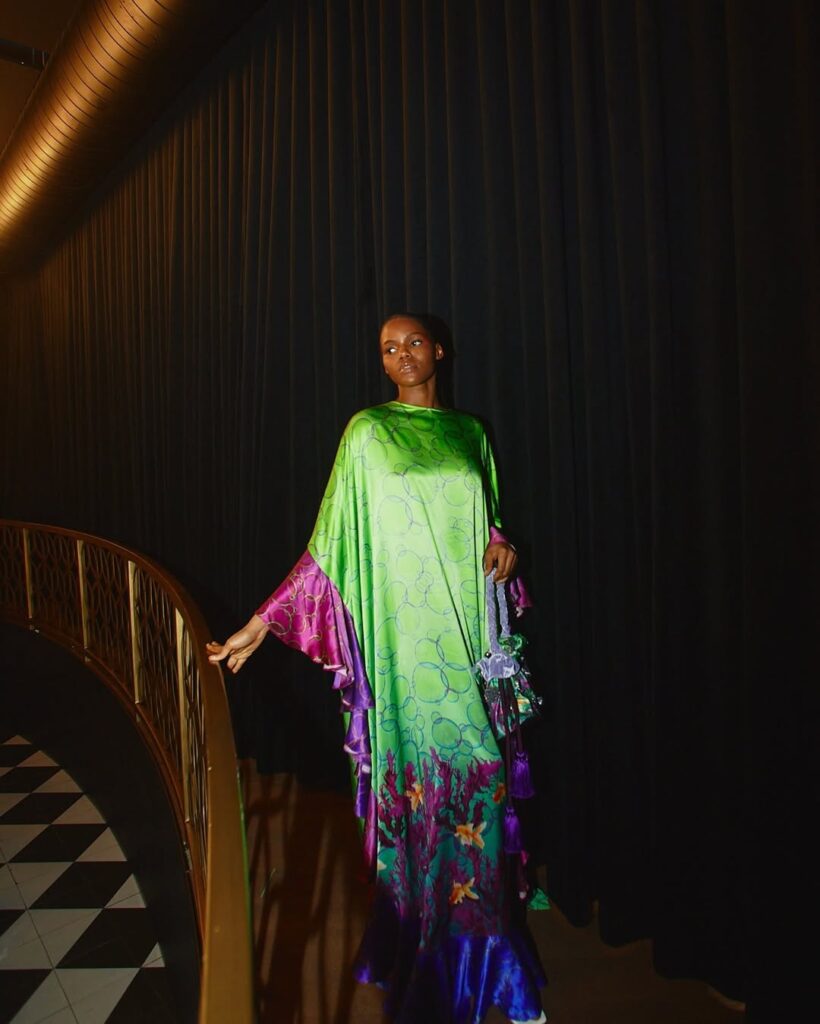 Over the years, the designer has released four collections. Her first was titled “A Parrot’s Dream,” which drew on frequent visits to the Aralia plant shop in Lagos, where a resident parrot and surrounding foliage inspired the collection.