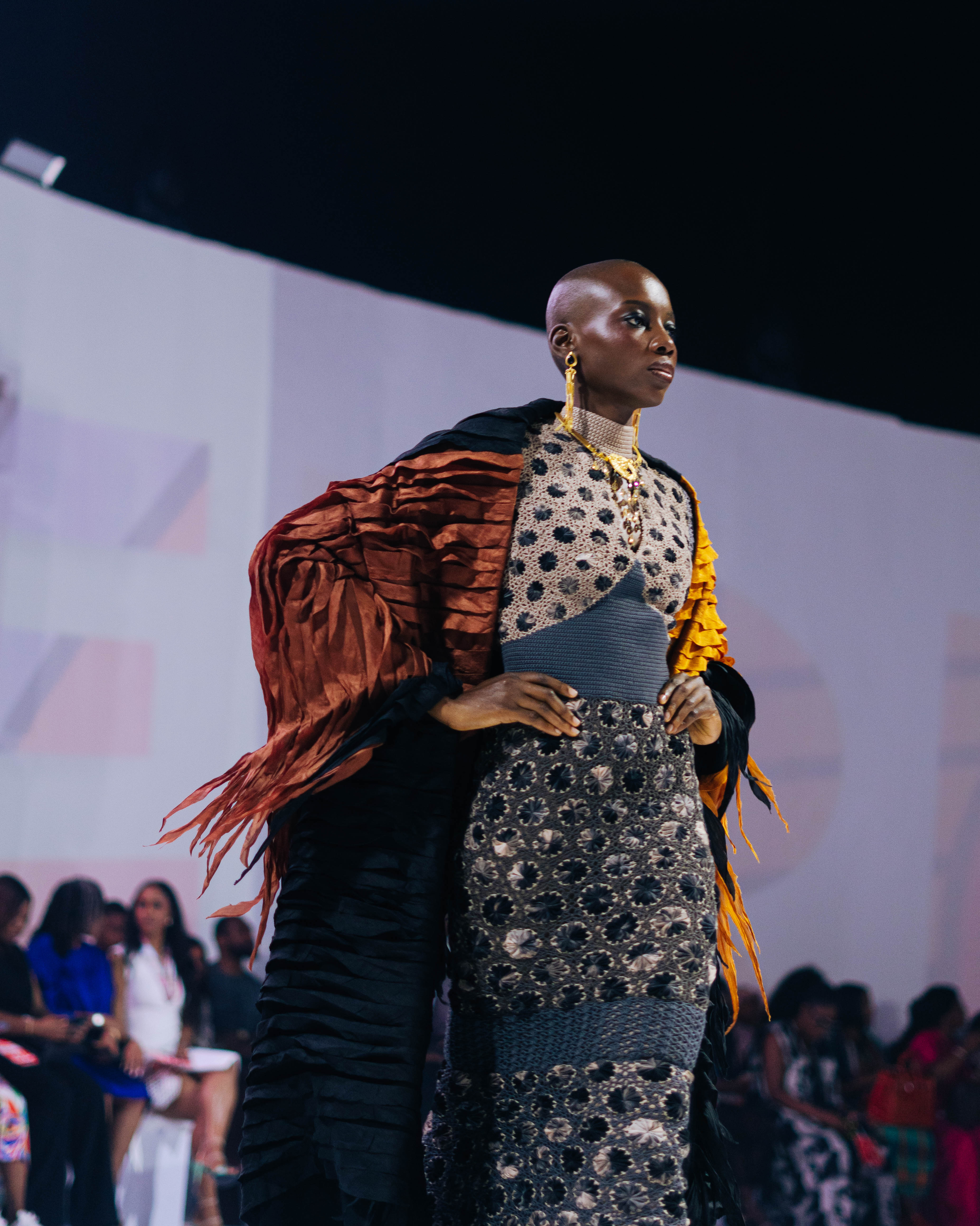 Eric Raisina lit up the Lagos runway with a breathtaking showcase of texture, color, and heritage at the GTCO Fashion Weekend. Renowned for his mastery of raffia and silk, the Malagasy designer wowed with fringed ensembles in vibrant yellows, fiery reds, and lush purples, each piece a celebration of meticulous craftsmanship.