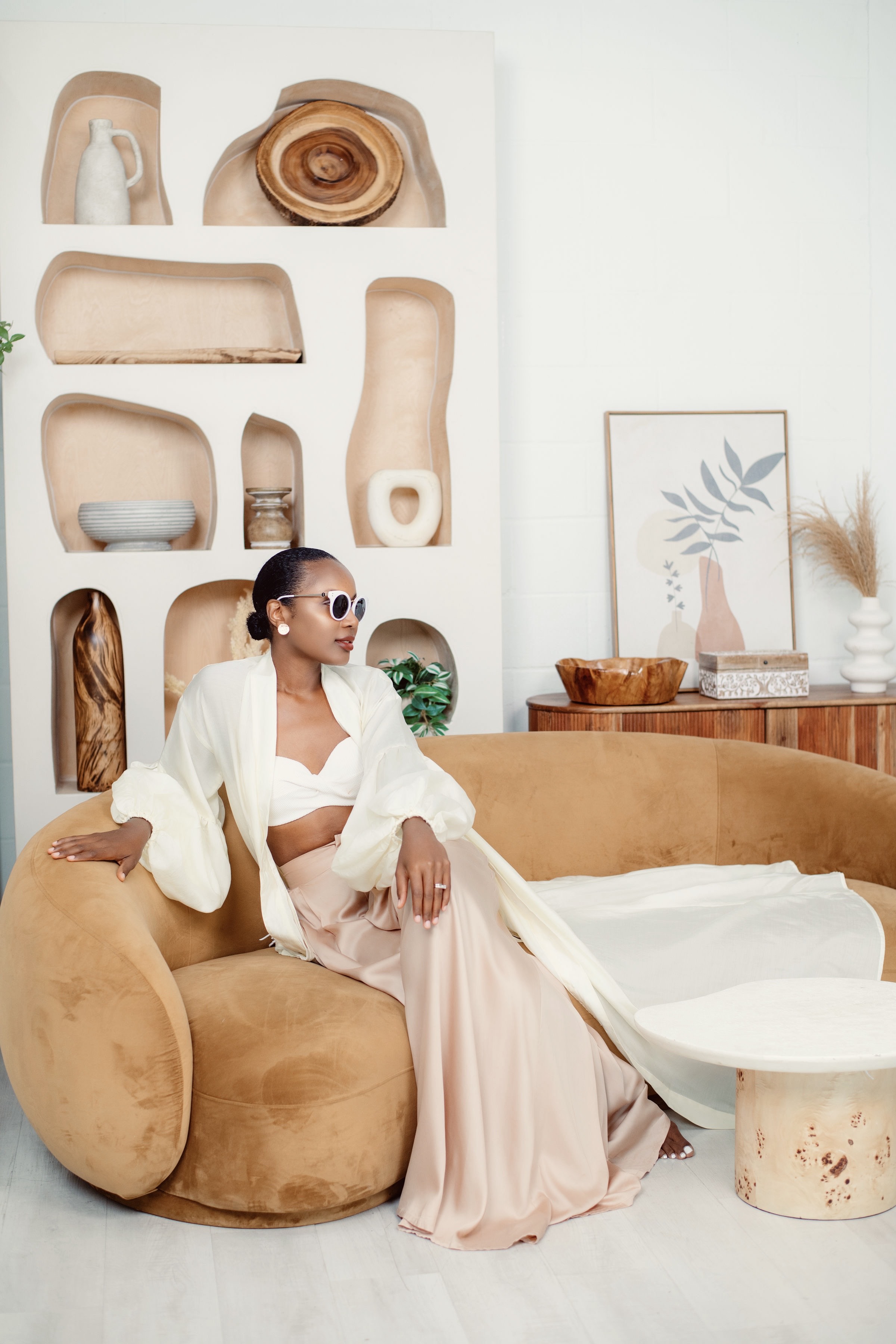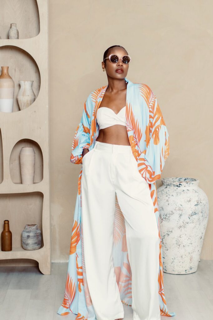 This collection transitions through various spaces, comfortably blending in and honoring functionality and versatility. It’s evident your designs are made to fit the body and not vice versa. The brand’s aesthetic for its recent capsule resort collection truly embodies that. It flows with the body’s curves with a regal essence, and each piece in this collection honors that. Where did the inspiration for this collection come from? “Customer feedback is one of my most valued resources. One of my customers reached out with a suggestion to consider curvy women with pant designs. I must say it came on time and was a sign to inspire the resort collection I was working on. So I thought it would be great to have something like a coverup dress that can be worn at a resort, brunch, or a party and that is carried throughout with the ability to style every piece with each other. It truly translated that we sold out within a week of premiering.”