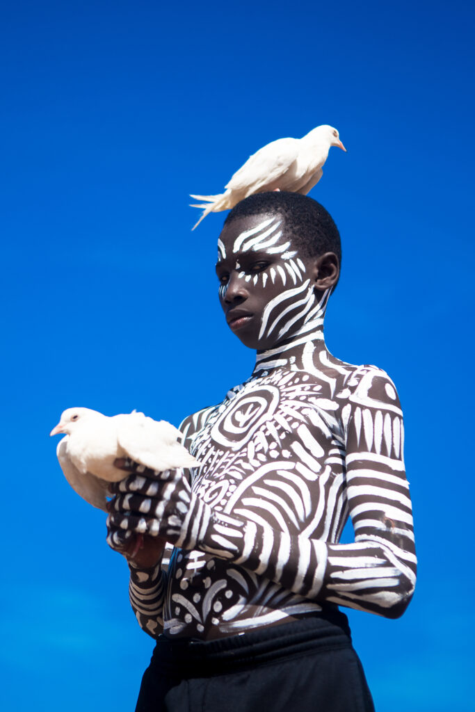 His creative method is threefold: “Painting prepares both the body and the spirit, setting the tone for transformation. Photography then captures that transformation in visual form. Performance creates an immersive experience—one that engages both the performer and the audience in real time, later preserved through visual documentation. Each element is incomplete without the others. Together, they create an experience where the subject doesn’t just pose—they become the story.”