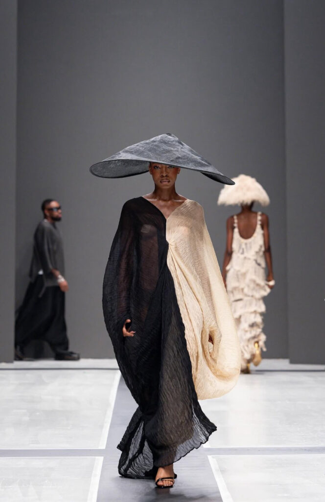 Kadiju’s sculptural puffer dresses and LFJ’s larger-than-life hats used volume deliberately. Ejiro Amos Tafiri’s pleating across ninety looks showed how drama and wearability can coexist.
