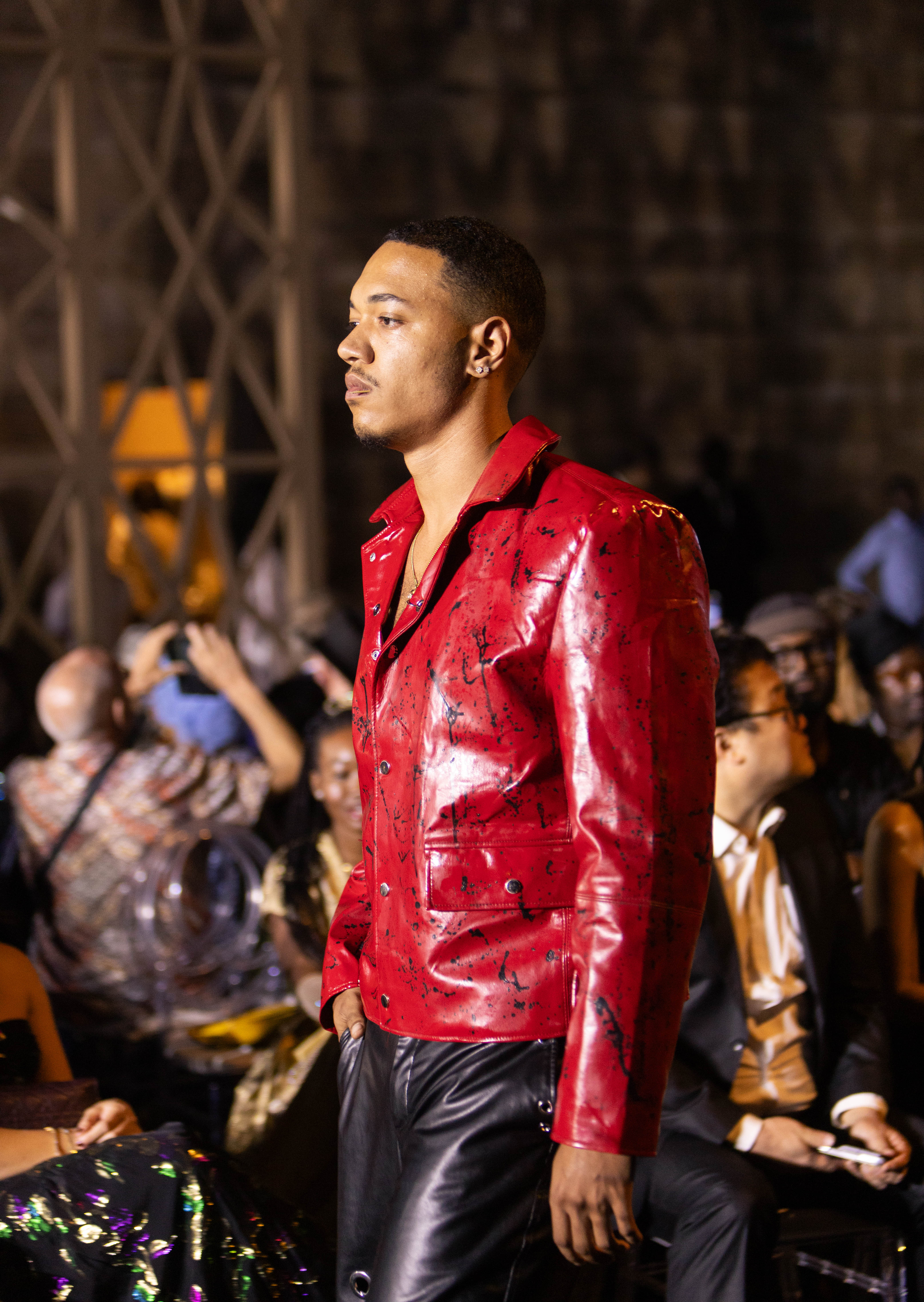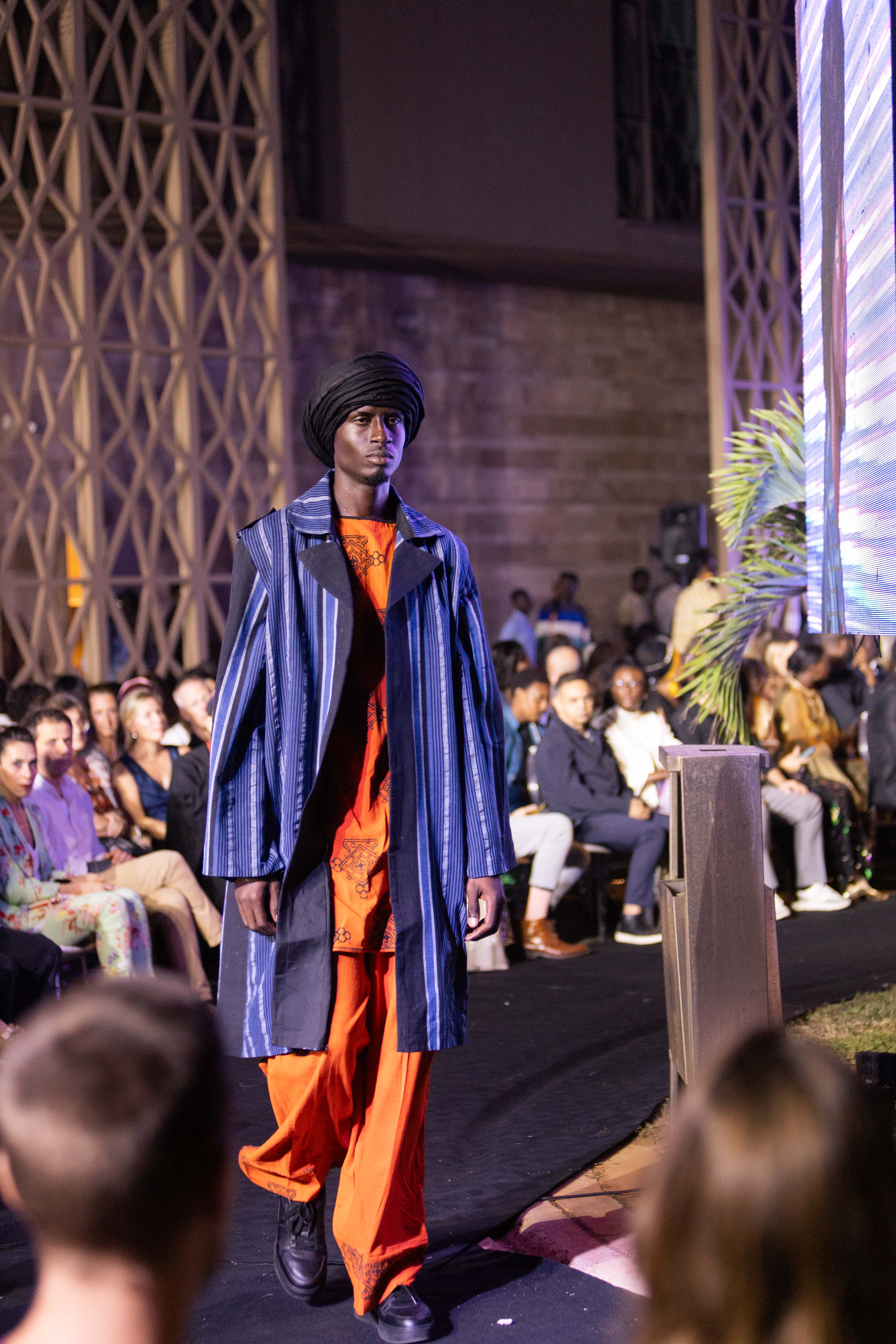 Izö opened the show with a collection that challenged every expectation—blazers with exaggerated shoulders, rock-inspired silhouettes, and pieces that exuded both strength and elegance. Abdou Ndaw, the creative force behind the brand, brings nearly a decade of experience in fashion merchandising to his work, offering a collection that redefines unisex fashion. With sleek tailoring, vegan leather, vinyl jackets, and sporty chic nylon sets, Izö pushes boundaries while embracing inclusivity and individuality. Abdou’s designs blend modernity with tradition, inspired by rock attire and his Senegalese heritage. The result is minimalist yet bold suits with a subtle touch of African roots.